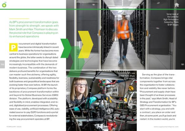 Serving as the glue of the transformation , Compass brings vital components together from across the organisation to foster collaboration and visibility like never before . “ Procurement and supply chain have been thought of as linear processes in the past ,” says Mark Smith , Head of Strategy and Transformation for BP ’ s GBS Procurement organisation . “ You start with a strategy , you end with a contract , you place an order and then , at some point , you ’ ll go back and restart . In the modern world , you ’ re