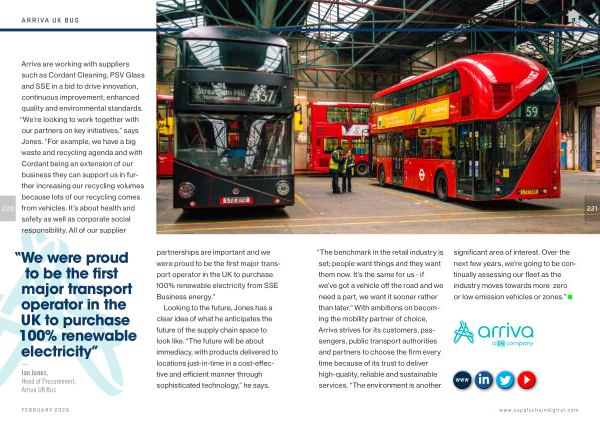 — Ian Jones , Head of Procurement , Arriva UK Bus partnerships are important and we were proud to be the first major transport operator in the UK to purchase 100 % renewable electricity from SSE Business energy .”