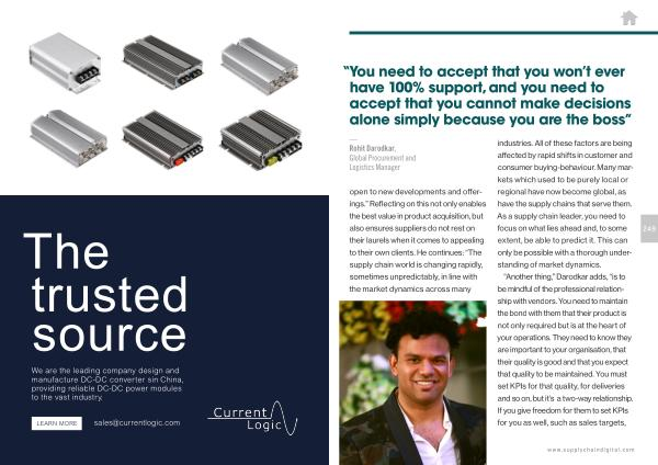 open to new developments and offerings .” Reflecting on this not only enables the best value in product acquisition , but also ensures suppliers do not rest on their laurels when it comes to appealing to their own clients . He continues : “ The supply chain world is changing rapidly , sometimes unpredictably , in line with the market dynamics across many industries . All of these factors are being affected by rapid shifts in customer and consumer buying-behaviour . Many markets which used to be purely local or regional have now become global , as have the supply chains that serve them . As a supply chain leader , you need to focus on what lies ahead and , to some extent , be able to predict it . This can only be possible with a thorough understanding of market dynamics .