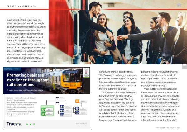Tulitt ’ s team in Transdev Wellington benefits from synergies with the group ’ s global business . “ Our biggest group innovation has been the MyTransdev app ,” he says . “ It gives us a business portal from all across the world directly into the hands of our frontline staff which allows them to have a voice . The app ’ s facilities cover personal rosters , news , staff sharing , chat and digital forms for incident reporting , standard admin processes and other cumbersome processes now digitised in one app .”