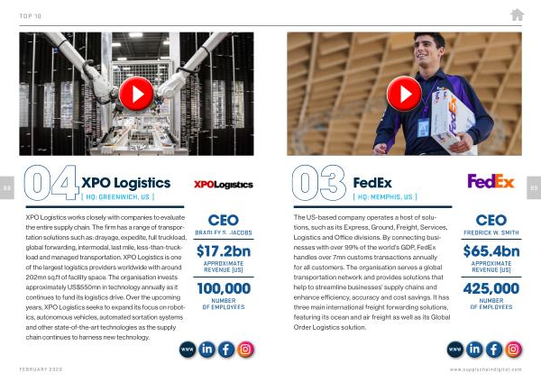 The US-based company operates a host of solutions , such as its Express , Ground , Freight , Services , Logistics and Office divisions . By connecting businesses with over 99 % of the world ’ s GDP , FedEx handles over 7mn customs transactions annually for all customers . The organisation serves a global transportation network and provides solutions that help to streamline businesses ’ supply chains and enhance efficiency , accuracy and cost savings . It has three main international freight forwarding solutions , featuring its ocean and air freight as well as its Global Order Logistics solution .