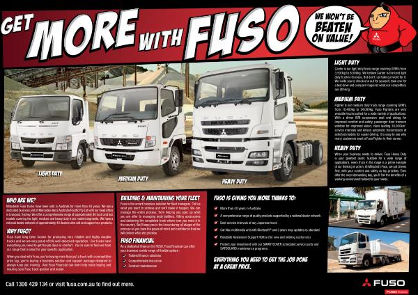 When your business needs to deliver , Fuso Heavy Duty is your greatest asset . Suitable for a wide range of applications , every truck in the range is a prime example of our thinking in action . At Mitsubishi Fuso , we put drivers first , with your comfort and safety as top priorities . Even after the most demanding day , you ’ ll feel the benefits of a working environment tailored to your needs .
