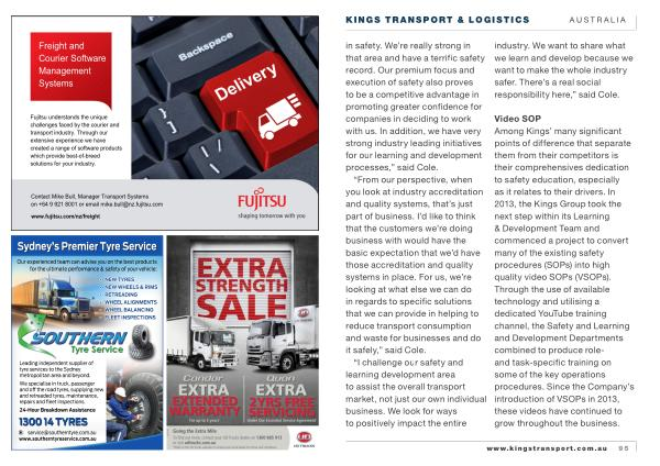 Video SOP Among Kings ’ many significant points of difference that separate them from their competitors is their comprehensives dedication to safety education , especially as it relates to their drivers . In 2013 , the Kings Group took the next step within its Learning & Development Team and commenced a project to convert many of the existing safety procedures ( SOPs ) into high quality video SOPs ( VSOPs ). Through the use of available technology and utilising a dedicated YouTube training channel , the Safety and Learning and Development Departments combined to produce roleand task-specific training on some of the key operations procedures . Since the Company ’ s introduction of VSOPs in 2013 , these videos have continued to grow throughout the business .