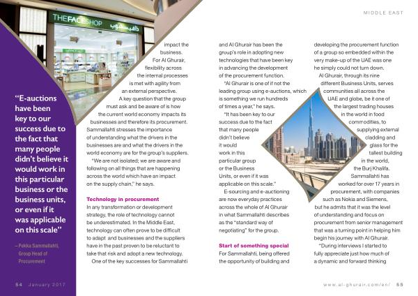 E-sourcing and e-auctioning are now everyday practices across the whole of Al Ghurair in what Sammallahti describes as the “ standard way of negotiating ” for the group .