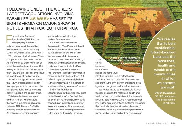 “ We realise that to be a sustainable , futurefocused business , the resources , health and wealth of the communities in which we operate are vital ,” said Hauxwell , who is responsible for leading the procurement and sustainability charge . Hauxwell , who has more than two decades of experience in the supply chain and procurement space , said AB InBev had a clear procurement