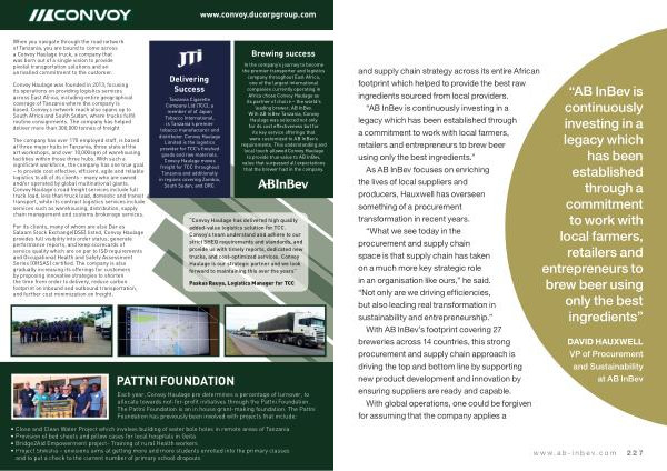 In the company ’ s journey to become the premier transporter and logistics company throughout East Africa , one of the largest international companies currently operating in Africa chose Convoy Haulage as its partner of choice – the world ’ s leading brewer , AB InBev . With AB InBev Tanzania , Convoy Haulage was selected not only for its cost effectiveness but for its key service offerings that were customized to AB InBev ’ s requirements . This understanding and local touch allowed Convoy Haulage to provide true value to AB InBev , value that surpassed all expectations that the brewer had in the company .