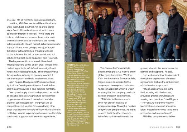 This ‘ farmer-first ’ mentality is evident throughout AB InBev ’ s entire global agriculture vision . Whether it ’ s in North America , Europe or Asia , Rogers points to a desire for the company to develop and maintain a hands-on approach which is vital in ensuring that the company can truly develop and grow communities .