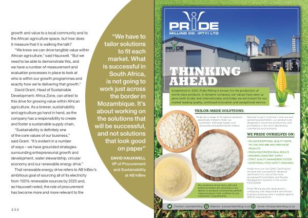 David Grant , Head of Sustainable Development : Africa Zone , can attest to this drive for growing value within African agriculture . As a brewer , sustainability and agriculture go hand in hand , as the company has a responsibility to create and foster a sustainable supply chain .