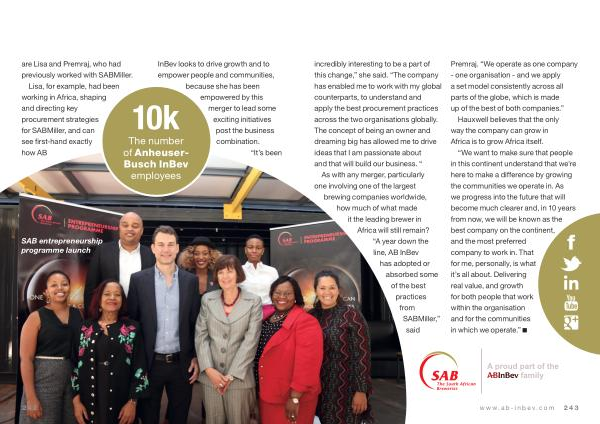 Lisa , for example , had been working in Africa , shaping and directing key procurement strategies for SABMiller , and can see first-hand exactly how AB