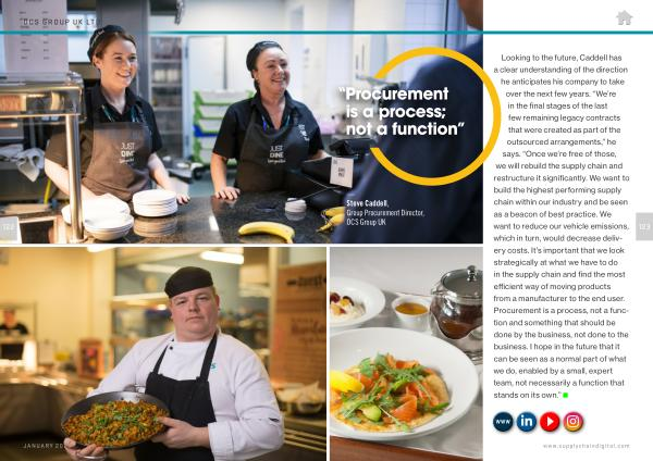 Looking to the future , Caddell has a clear understanding of the direction he anticipates his company to take over the next few years . “ We ’ re in the final stages of the last few remaining legacy contracts that were created as part of the outsourced arrangements ,” he says . “ Once we ’ re free of those , we will rebuild the supply chain and restructure it significantly . We want to build the highest performing supply chain within our industry and be seen as a beacon of best practice . We want to reduce our vehicle emissions , which in turn , would decrease delivery costs . It ’ s important that we look strategically at what we have to do in the supply chain and find the most efficient way of moving products from a manufacturer to the end user . Procurement is a process , not a function and something that should be done by the business , not done to the business . I hope in the future that it can be seen as a normal part of what we do , enabled by a small , expert team , not necessarily a function that stands on its own .”