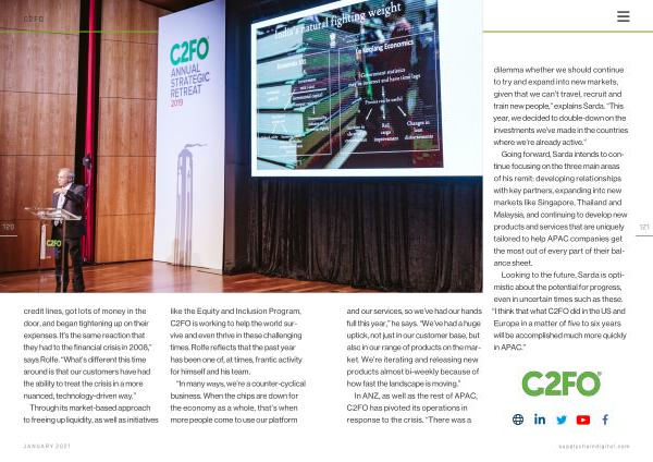 Through its market-based approach to freeing up liquidity , as well as initiatives like the Equity and Inclusion Program , C2FO is working to help the world survive and even thrive in these challenging times . Rolfe reflects that the past year has been one of , at times , frantic activity for himself and his team .
