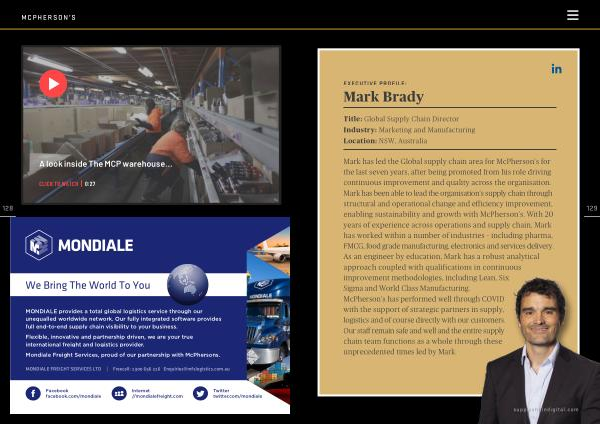 Mark has led the Global supply chain area for McPherson ’ s for the last seven years , after being promoted from his role driving continuous improvement and quality across the organisation . Mark has been able to lead the organisation ’ s supply chain through structural and operational change and efficiency improvement , enabling sustainability and growth with McPherson ’ s . With 20 years of experience across operations and supply chain , Mark has worked within a number of industries – including pharma , FMCG , food grade manufacturing , electronics and services delivery . As an engineer by education , Mark has a robust analytical approach coupled with qualifications in continuous improvement methodologies , including Lean , Six Sigma and World Class Manufacturing . McPherson ’ s has performed well through COVID with the support of strategic partners in supply , logistics and of course directly with our customers . Our staff remain safe and well and the entire supply chain team functions as a whole through these unprecedented times led by Mark .