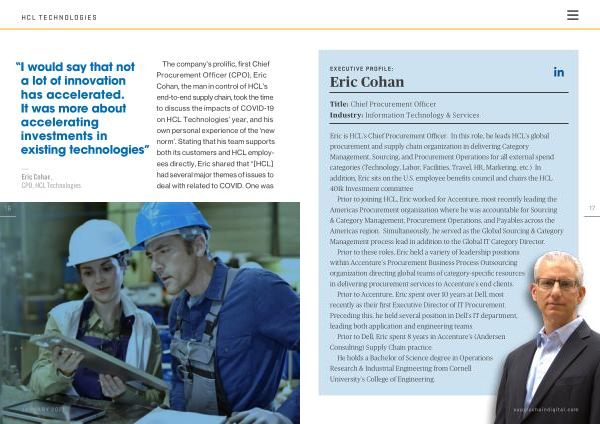The company ’ s prolific , first Chief Procurement Officer ( CPO ), Eric Cohan , the man in control of HCL ’ s end-to-end supply chain , took the time to discuss the impacts of COVID-19 on HCL Technologies ’ year , and his own personal experience of the ‘ new norm ’. Stating that his team supports both its customers and HCL employees directly , Eric shared that “[ HCL ] had several major themes of issues to deal with related to COVID . One was