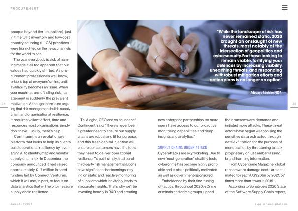“ While the landscape of risk has never remained static , 2020 brought an onslaught of new threats , most notably at the intersection of geopolitics and cybersecurity . For those looking to remain viable , fortifying your defences by increasing visibility , unearthing threats , and responding with robust mitigation efforts and action plans is no longer an option ”