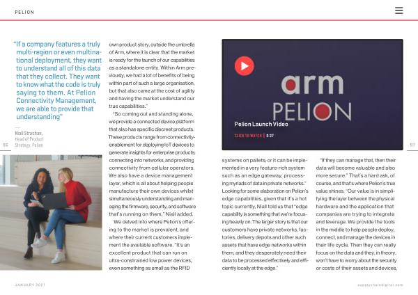 97 systems on pallets ; or it can be implemented in a very feature-rich system such as an edge gateway , processing myriads of data in private networks .” Looking for some elaboration on Pelion ’ s edge capabilities , given that it ’ s a hot topic currently , Niall told us that “ edge capability is something that we ’ re focusing heavily on . The larger story is that our customers have private networks , factories , delivery depots and other such assets that have edge networks within them , and they desperately need their data to be processed effectively and efficiently locally at the edge .”