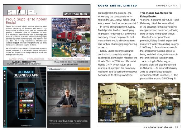 Due to the scope of these projects , Kobay Enstel expanded its current facility by adding roughly 21,000 sq . ft . Brand new state-ofthe-art robotic welding cells are being installed alongside state-ofthe-art hydraulic tube benders . According to Galansky , a second plant will also be opened in Alabama , U . S . around February 2016 to begin Kobay Enstel ’ s expansion efforts into the U . S . This plant will be around 35,000 sq . ft .