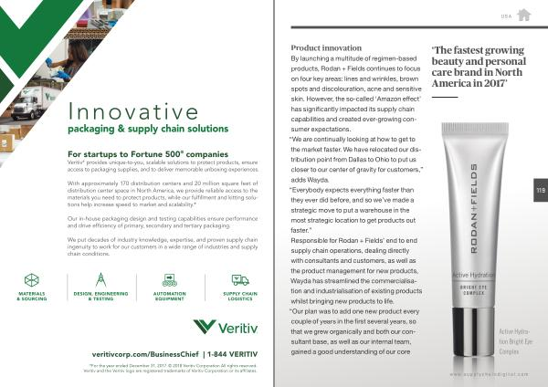 By launching a multitude of regimen-based products , Rodan + Fields continues to focus on four key areas : lines and wrinkles , brown spots and discolouration , acne and sensitive skin . However , the so-called ‘ Amazon effect ’ has significantly impacted its supply chain capabilities and created ever-growing consumer expectations . “ We are continually looking at how to get to the market faster . We have relocated our distribution point from Dallas to Ohio to put us closer to our center of gravity for customers ,” adds Wayda . “ Everybody expects everything faster than they ever did before , and so we ’ ve made a strategic move to put a warehouse in the most strategic location to get products out faster .” Responsible for Rodan + Fields ’ end to end supply chain operations , dealing directly with consultants and customers , as well as the product management for new products , Wayda has streamlined the commercialisation and industrialisation of existing products whilst bringing new products to life . “ Our plan was to add one new product every couple of years in the first several years , so that we grew organically and both our consultant base , as well as our internal team , gained a good understanding of our core