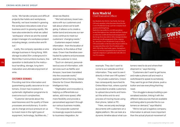 “ We hold advisory board sessions with our customers and talk about where we ' re both going . It allows us to create a better bond and ensures our services continue to meet our customers ’ changing needs .” Customers expect instant information - from the location of shipments , to the status of their visas . Crown has therefore overhauled its systems and processes with the customer in mind .