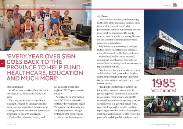 CANADA says Bolen . “ We scale the complexity of the sourcing methods to fit the individual business objectives , within the confines of public procurement practice . For example , the processes that we implemented to justify contract awards within our lottery division are the same for other business divisions across the organisation .”