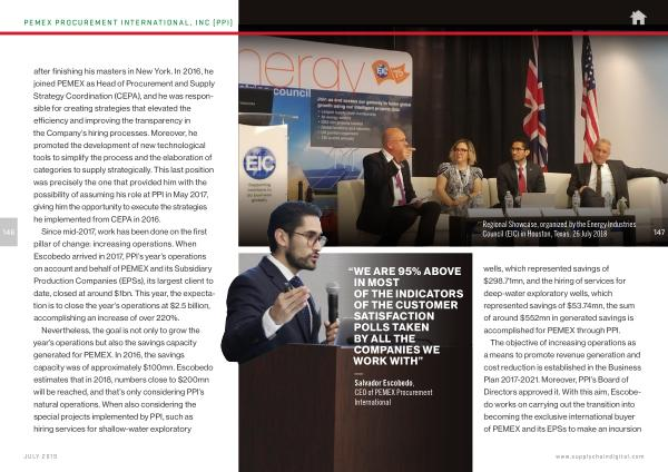 — Salvador Escobedo , CEO of PEMEX Procurement International wells , which represented savings of $ 298.71mn , and the hiring of services for deep-water exploratory wells , which represented savings of $ 53.74mn , the sum of around $ 552mn in generated savings is accomplished for PEMEX through PPI .
