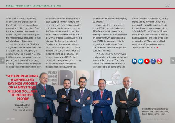 PPI is also using the current hydrocarbons crisis to its favor and become a more solid company . The crisis helped to determine the new line of work that looks for new clients and a wider scheme of services . By having PEMEX as its only client , given the energy reform and the crude oil crisis , the significant decrease in operations affects PEMEX , but it affects PPI even more . Fortunately , this crisis is already being overcome - the price of Mexican oil was above $ 72 per barrel all last week , which Escobedo considers “ a price that is quite good ”.