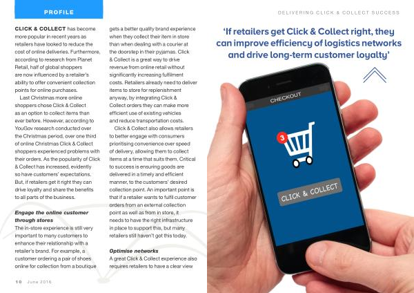 Engage the online customer through stores The in-store experience is still very important to many customers to enhance their relationship with a retailer ’ s brand . For example , a customer ordering a pair of shoes online for collection from a boutique gets a better quality brand experience when they collect their item in store than when dealing with a courier at the doorstep in their pyjamas . Click & Collect is a great way to drive revenue from online retail without significantly increasing fulfilment costs . Retailers already need to deliver items to store for replenishment anyway , by integrating Click & Collect orders they can make more efficient use of existing vehicles and reduce transportation costs .