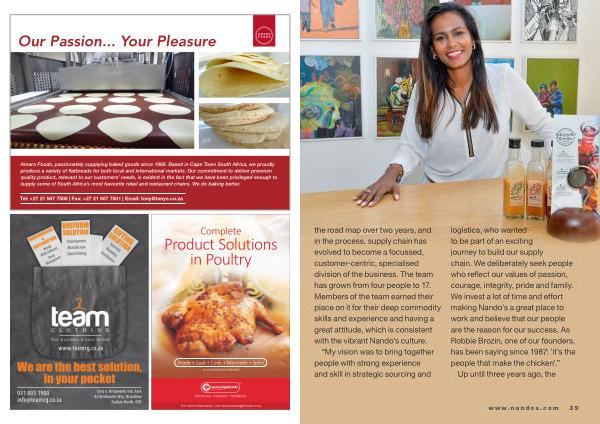 the road map over two years , and in the process , supply chain has evolved to become a focussed , customer-centric , specialised division of the business . The team has grown from four people to 17 . Members of the team earned their place on it for their deep commodity skills and experience and having a great attitude , which is consistent with the vibrant Nando ’ s culture .