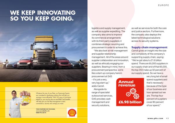 “ We also look at risk management and supplier relationship management . All of the areas around supplier collaboration and innovation , as well as ethically engaging our suppliers . Bearing in mind , from a procurement perspective , we ’ re like a start-up company here in procurement at G4S – it ’ s just a very , very big start-up ,” adds Carroll .