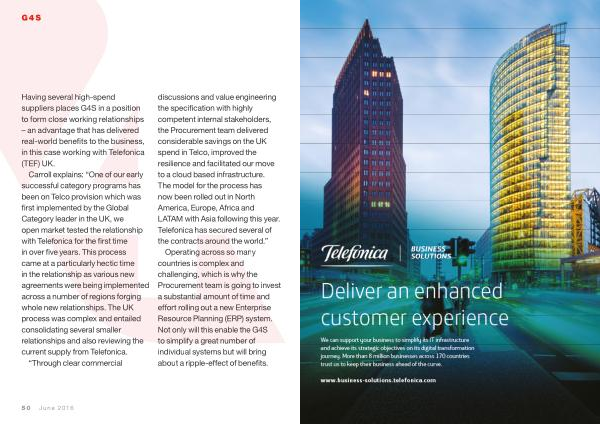 Having several high-spend suppliers places G4S in a position to form close working relationships – an advantage that has delivered real-world benefits to the business , in this case working with Telefonica ( TEF ) UK .