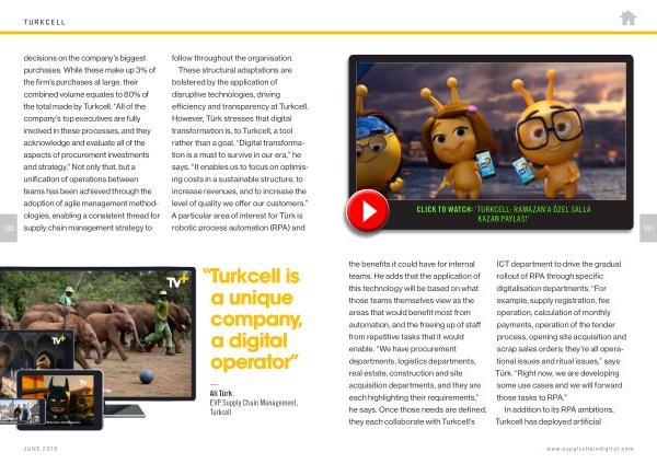 131 the benefits it could have for internal teams . He adds that the application of this technology will be based on what those teams themselves view as the areas that would benefit most from automation , and the freeing up of staff from repetitive tasks that it would enable . “ We have procurement departments , logistics departments , real estate , construction and site acquisition departments , and they are each highlighting their requirements ,” he says . Once those needs are defined , they each collaborate with Turkcell ’ s