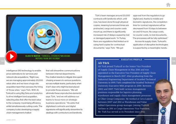intelligence ( AI ) technology to enable price estimations for services and network site acquisitions . “ Right now , we are managing approximately 20,000 value sites and we have a huge site acquisition team that oversees the hiring of those sites ,” says Türk . With AI , Turkcell is using Big Data and analytics to drive intelligent land acquisition , selecting sites that offer the best value to the company : maximising efficiency whilst simultaneously cutting costs . The company is also developing a supply chain management chatbot that will streamline communications between internal departments . The chatbot stands to mitigate time spent chasing answers to various questions across multiple teams , particularly when it isn ’ t clear who might be best placed to provide those answers . “ We will eliminate these unproductive elements ” says Türk , “ and we will address our teams to focus more on strategic business operations .” He adds that digitalised contracts and digital signatures will significantly streamline its dealings with contractors and landlords .