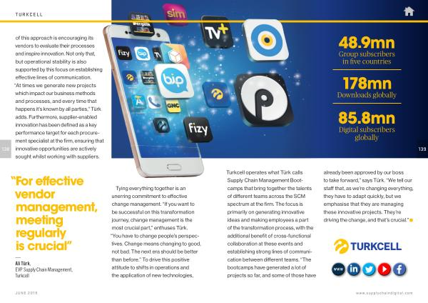 Turkcell operates what Türk calls Supply Chain Management Bootcamps that bring together the talents of different teams across the SCM spectrum at the firm . The focus is primarily on generating innovative ideas and making employees a part of the transformation process , with the additional benefit of cross-functional collaboration at these events and establishing strong lines of communication between different teams . “ The bootcamps have generated a lot of projects so far , and some of those have