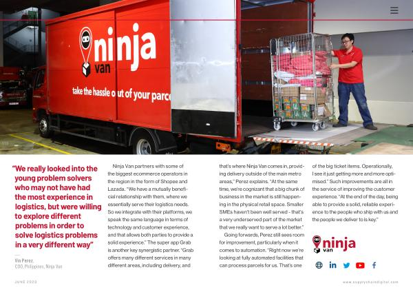 Ninja Van partners with some of the biggest ecommerce operators in the region in the form of Shopee and Lazada . “ We have a mutually beneficial relationship with them , where we essentially serve their logistics needs . So we integrate with their platforms , we speak the same language in terms of technology and customer experience , and that allows both parties to provide a solid experience .” The super app Grab is another key synergistic partner . “ Grab offers many different services in many different areas , including delivery , and