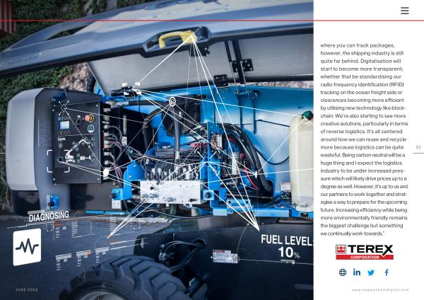 where you can track packages , however , the shipping industry is still quite far behind . Digitalisation will start to become more transparent ; whether that be standardising our radio frequency identification ( RFID ) tracking on the ocean freight side or clearances becoming more efficient by utilising new technology like blockchain . We ’ re also starting to see more creative solutions , particularly in terms of reverse logistics . It ’ s all centered around how we can reuse and recycle more because logistics can be quite wasteful . Being carbon neutral will be a huge thing and I expect the logistics industry to be under increased pressure which will likely drive prices up to a degree as well . However , it ’ s up to us and our partners to work together and strategise a way to prepare for the upcoming future . Increasing efficiency while being more environmentally friendly remains the biggest challenge but something we continually work towards .”