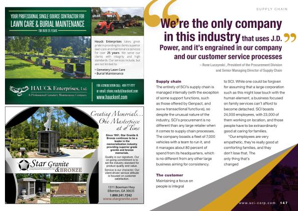to SCI . While one could be forgiven for assuming that a large corporation such as this might lose touch with the human element , a business focused on family services can ’ t afford to become detached . SCI boasts 24,000 employees , with 23,000 of them working on location , and those people have to be extraordinarily good at caring for families .