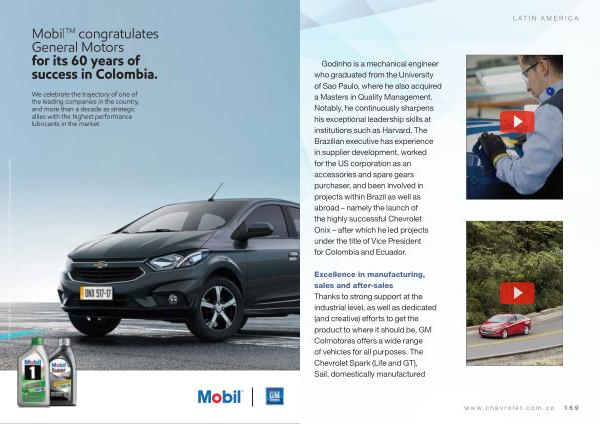 Excellence in manufacturing , sales and after-sales Thanks to strong support at the industrial level , as well as dedicated ( and creative ) efforts to get the product to where it should be , GM Colmotores offers a wide range of vehicles for all purposes . The Chevrolet Spark ( Life and GT ), Sail , domestically manufactured www . chevrolet . com . co 169