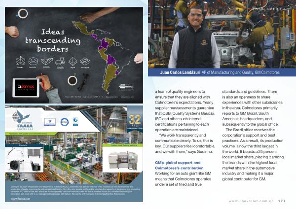 GM ’ s global support and Colmotores ’ s contribution Working for an auto giant like GM means that Colmotores operates under a set of tried and true