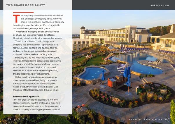 Personalized approach “ For me , probably the biggest draw to join Two Roads Hospitality was the challenge of building a sourcing strategy that embraces the unique needs of each property but still aggregates our national