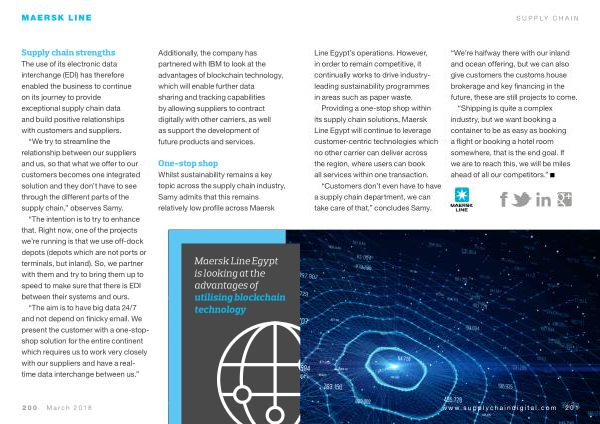 Whilst sustainability remains a key topic across the supply chain industry , Samy admits that this remains relatively low profile across Maersk