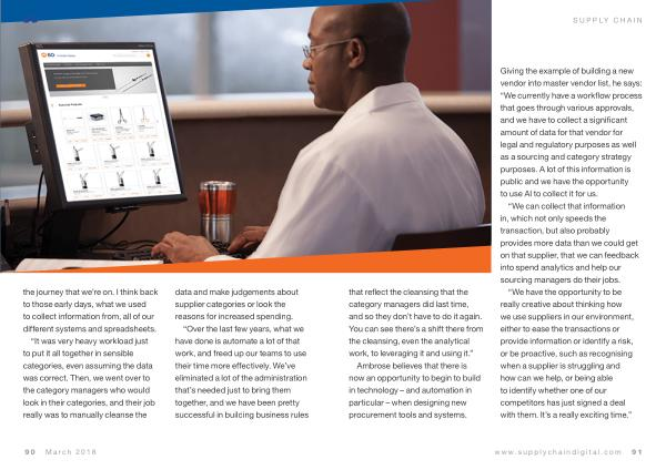 that reflect the cleansing that the category managers did last time , and so they don ’ t have to do it again . You can see there ’ s a shift there from the cleansing , even the analytical work , to leveraging it and using it .” Ambrose believes that there is now an opportunity to begin to build in technology – and automation in particular – when designing new procurement tools and systems .