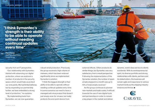 107 external effects . Other products do similar things , but Symantec was very satisfactory from a result perspective . Following the implementation of the Symantec solution , the number of spam emails stopped in a month was up to 15 % of total emails received .”