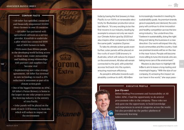 Jan Clysner Before leading Procurement and Sustainability at AB InBev APAC , I had the opportunity to do several procurement roles in the company . These roles not only gave me the opportunity to build knowledge and experiences in several categories across the world , but also provided me the perfect platform of continuously learning www . supplychaindigital . com