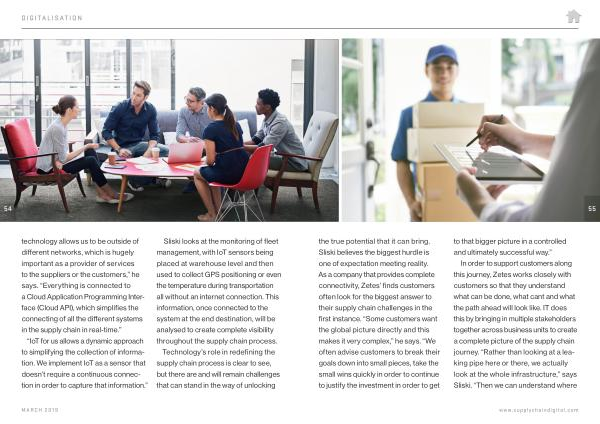 Sliski looks at the monitoring of fleet management , with IoT sensors being placed at warehouse level and then used to collect GPS positioning or even the temperature during transportation all without an internet connection . This information , once connected to the system at the end destination , will be analysed to create complete visibility throughout the supply chain process .