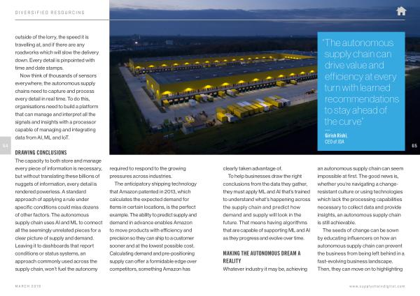 Now think of thousands of sensors everywhere ; the autonomous supply chains need to capture and process every detail in real time . To do this , organisations need to build a platform that can manage and interpret all the signals and insights with a processor capable of managing and integrating data from AI , ML and IoT .