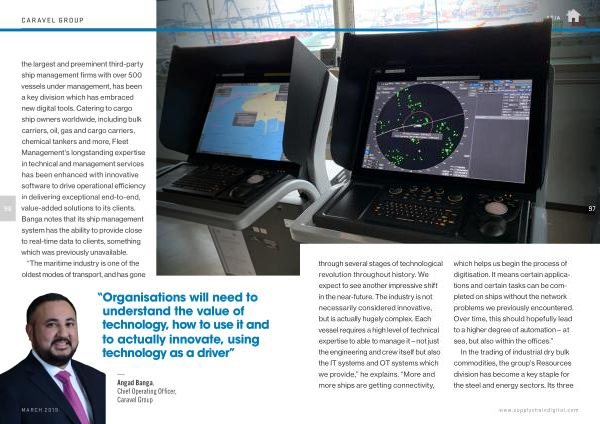 96 the largest and preeminent third-party ship management firms with over 500 vessels under management , has been a key division which has embraced new digital tools . Catering to cargo ship owners worldwide , including bulk carriers , oil , gas and cargo carriers , chemical tankers and more , Fleet Management ’ s longstanding expertise in technical and management services has been enhanced with innovative software to drive operational efficiency in delivering exceptional end-to-end , value-added solutions to its clients . Banga notes that its ship management system has the ability to provide close to real-time data to clients , something which was previously unavailable .