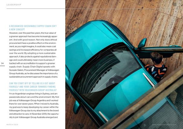 However , over the past few years , the true value of a greener approach has become increasingly apparent . And with good reason . Not only does ethical procurement have a positive effect on the environment , as you might imagine , it could also mean cost savings and increased efficiency for companies all over the world . By adopting a more sustainable approach , it also protects against reputational damage and could ultimately mean more business , if backed with an accreditation to support a greener supply chain . Supply Chain Digital speaks with Gonzalo Salem , Procurement Manager at Volkswagen Group Australia , as he discusses the importance of a sustainable procurement approach in supply chains .