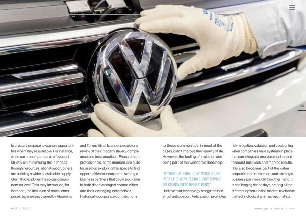38 to create the space to explore opportunities when they ’ re available . For instance , while some companies are focused strictly on minimising their impact through resources rationalisation , others are building a wider sustainable supply chain that explores the social component as well . This may introduce , for instance , the inclusion of social enterprises , businesses owned by Aboriginal and Torres Strait Islander people or a review of their modern slavery compliance and best practices . Procurement professionals , at the moment , are quite focused on exploring this space to find opportunities to incorporate strategic business partners that could add value to both disadvantaged communities and their emerging enterprises . Historically , corporate contributions