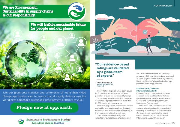 Ecovadis ratings based on international standards EcoVadis ratings cover seven indicators across 21 sustainability criteria that are grouped into four themes : Environment , Labour and Human Rights , Ethics , and Sustainable Procurement .