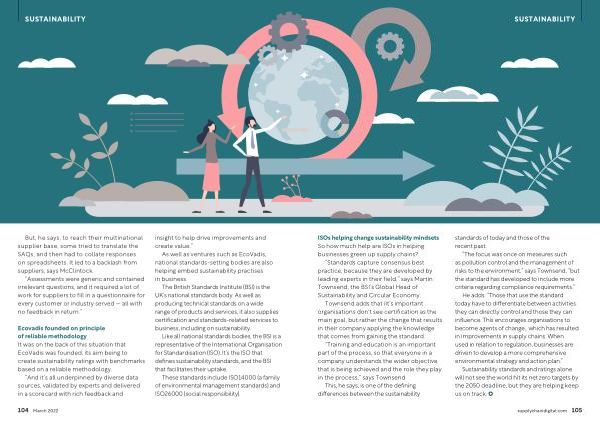 As well as ventures such as EcoVadis , national standards-setting bodies are also helping embed sustainability practises in business .