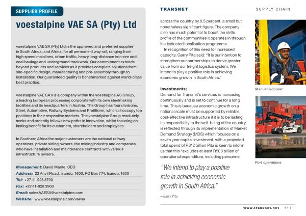 Investments : Demand for Transnet ’ s services is increasing continuously and is set to continue for a long time . This is because economic growth on a national scale must be supported by reliable , cost-effective infrastructure if it is to be lasting . Its responsibility to the well-being of the country is reflected through its implementation of Market Demand Strategy ( MDS ) which focuses on a seven year capital investment , with a projected total spend of R312 billion Pita is keen to inform us that this “ excludes at least R500 billion of operational expenditure , including personnel
